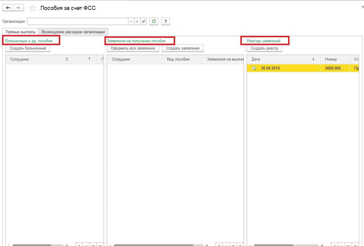 Для этого откройте раздел: «Главное – Пособия за счет ФСС». Далее вы увидите 3 колонки: