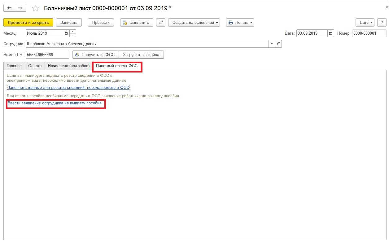 Помимо этого, появилась еще одна вкладка «Пилотный проект ФСС». В ней вы можете сформировать заявление сотрудника на выплату пособия и отдать его на подпись (рис.8).