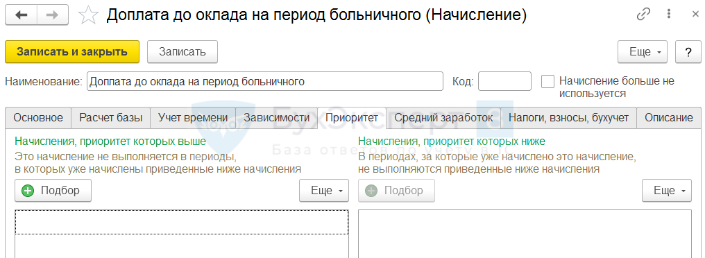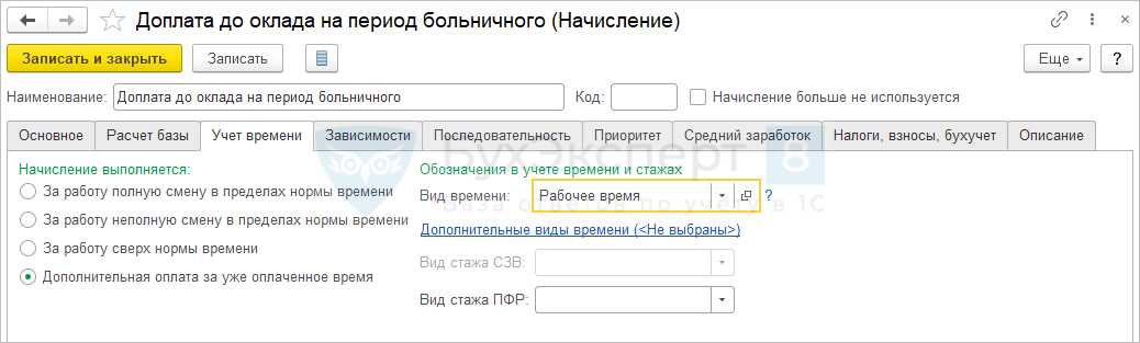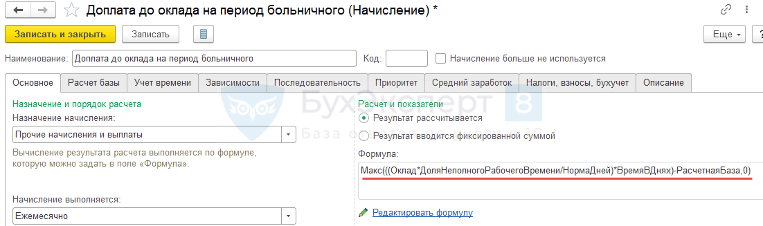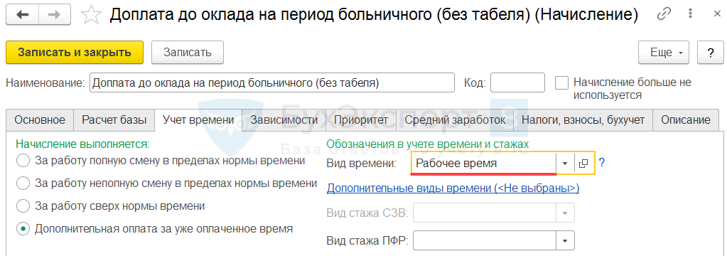 Вариант 1. Доплата до оклада за дни болезни, если «Табель» НЕ ведется