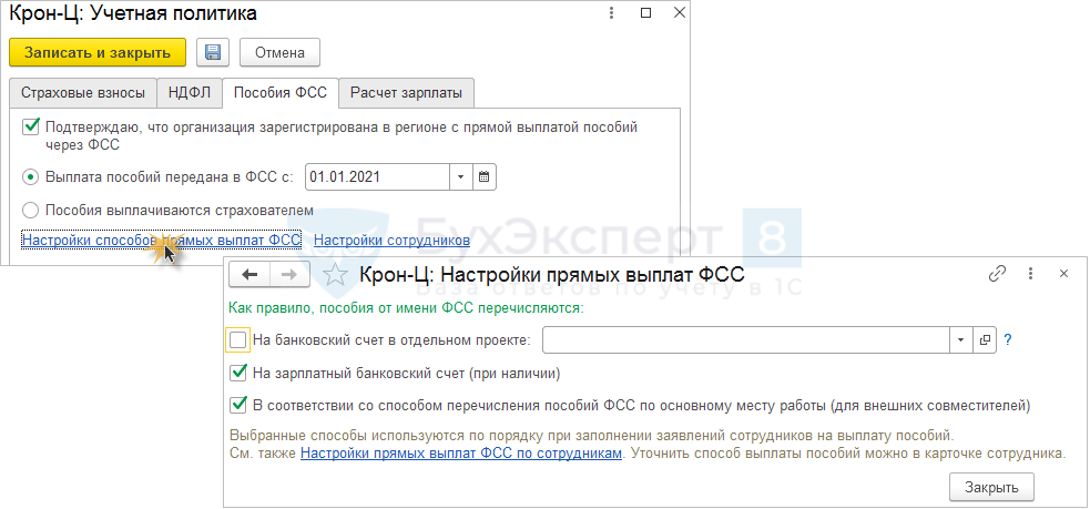 В учетных программах 1С предусмотрено начисление пособий и формирование отчетности для участников пилотного проекта ФСС. Для этого нужно сделать определенные настройки.