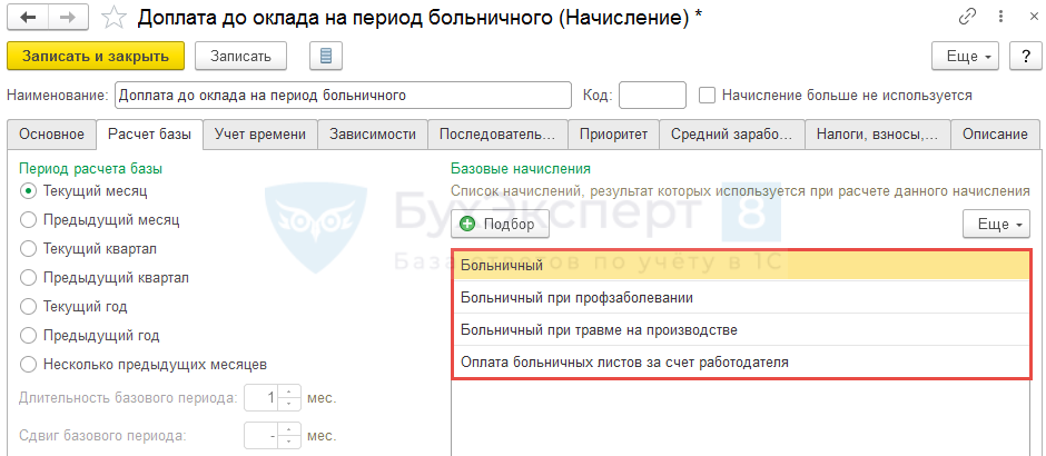 Включение в расчетную базу суммы пособия за счет ФСС (ЗУП 3.1.18)