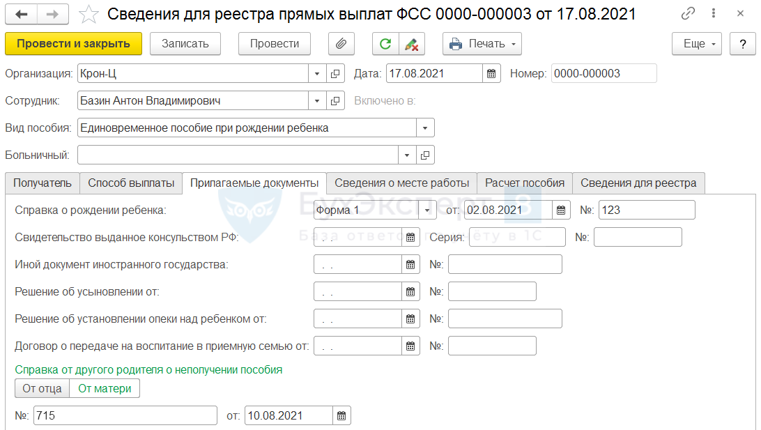 Прямые выплаты пособий в «1С:Зарплате и управлении персоналом 8»