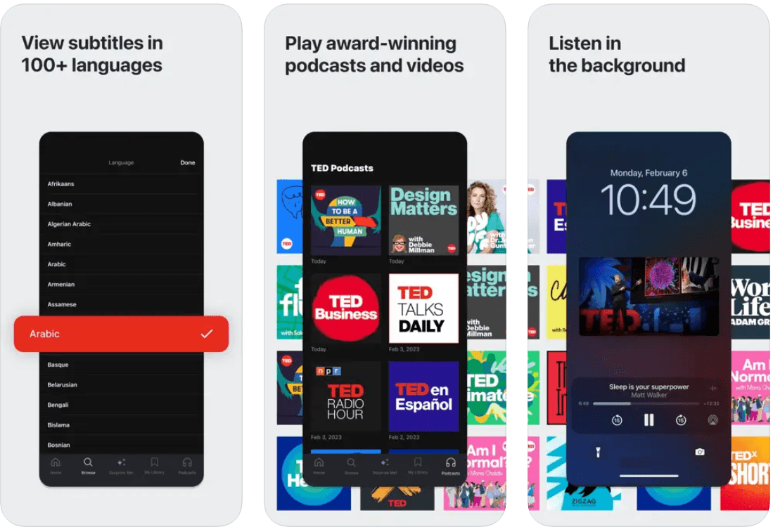 Сюда можно приходить не только за языком, но и за вдохновением. Внутри – тысячи англоязычных лекций и спичей на самые разные темы. А субтитры помогут вам лучше понимать спикеров независимо от их произношения.