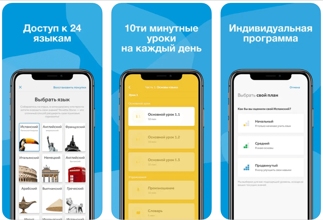 - Rosetta Stone – доступны более 20 языков, запатентованная технология распознавания речи, уникальная методика погружения, нет подписки на месяц.