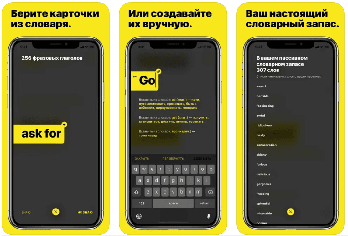 - Flashcards – более 100 языков для изучения, импорт и экспорт слов в Excel, нельзя оплатить подписку из России.