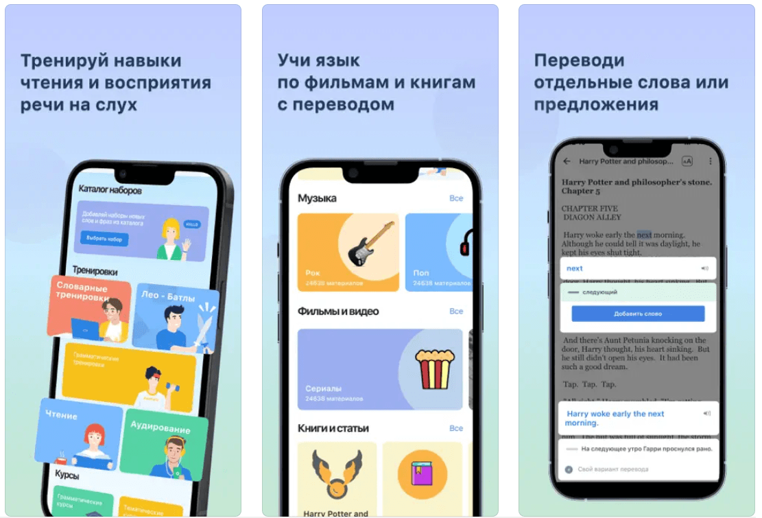 Приложений для изучения английского, китайского, немецкого, испанского и других языков очень много. Все они заточены под разные цели: