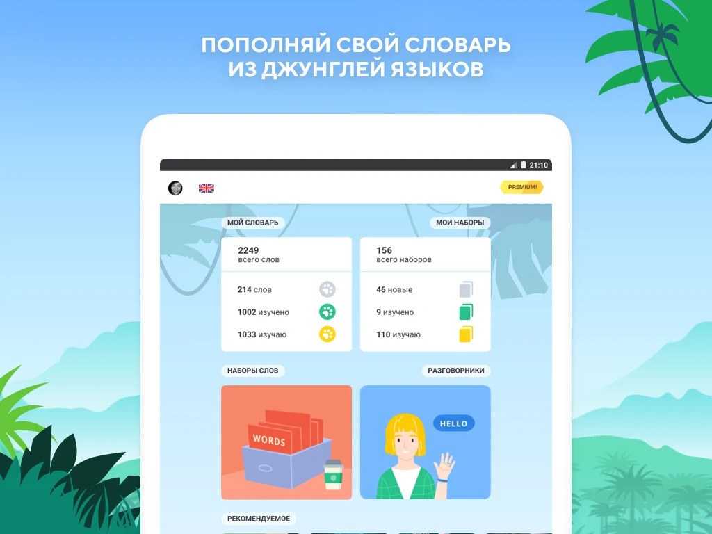 - LinguaLeo – 9 языков для изучения, игровая форма обучения, единый аккаунт для разных устройств, не работает офлайн.