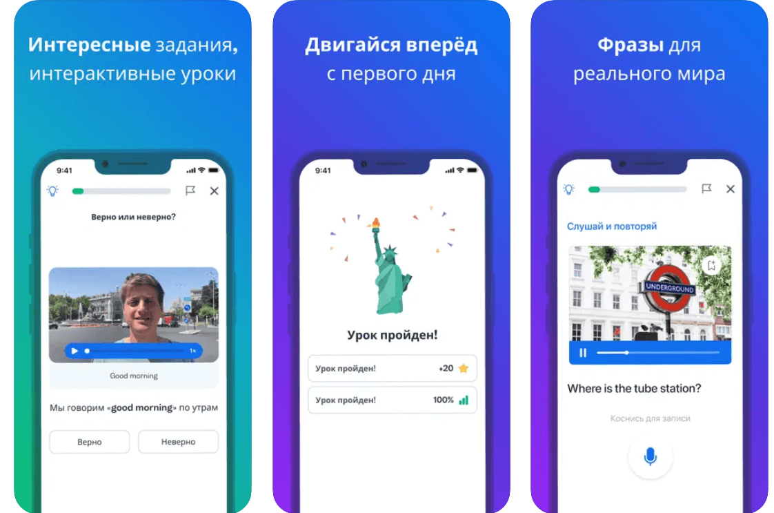 - Это не скучный способ. Многие приложения геймифицированы, то есть включают игровые элементы. Они отслеживают успехи в обучении, награждают поощрительными призами. Используют развлекательный контент: фильмы, клипы, аудиозаписи.