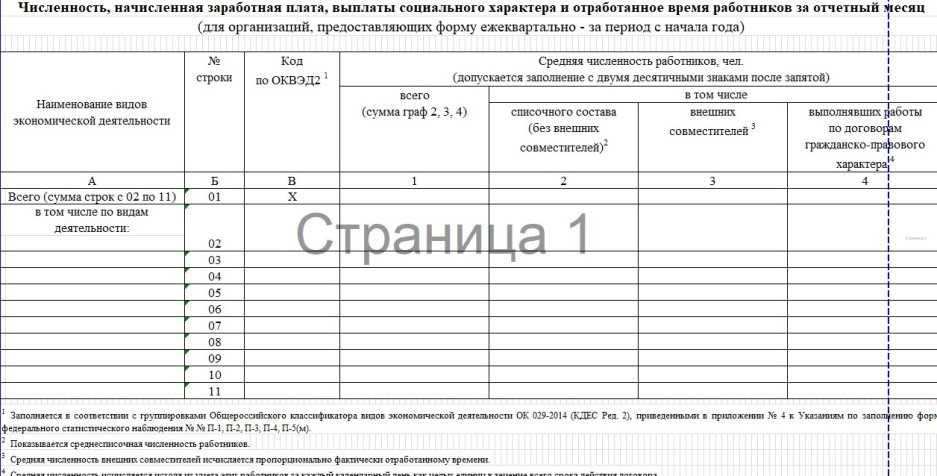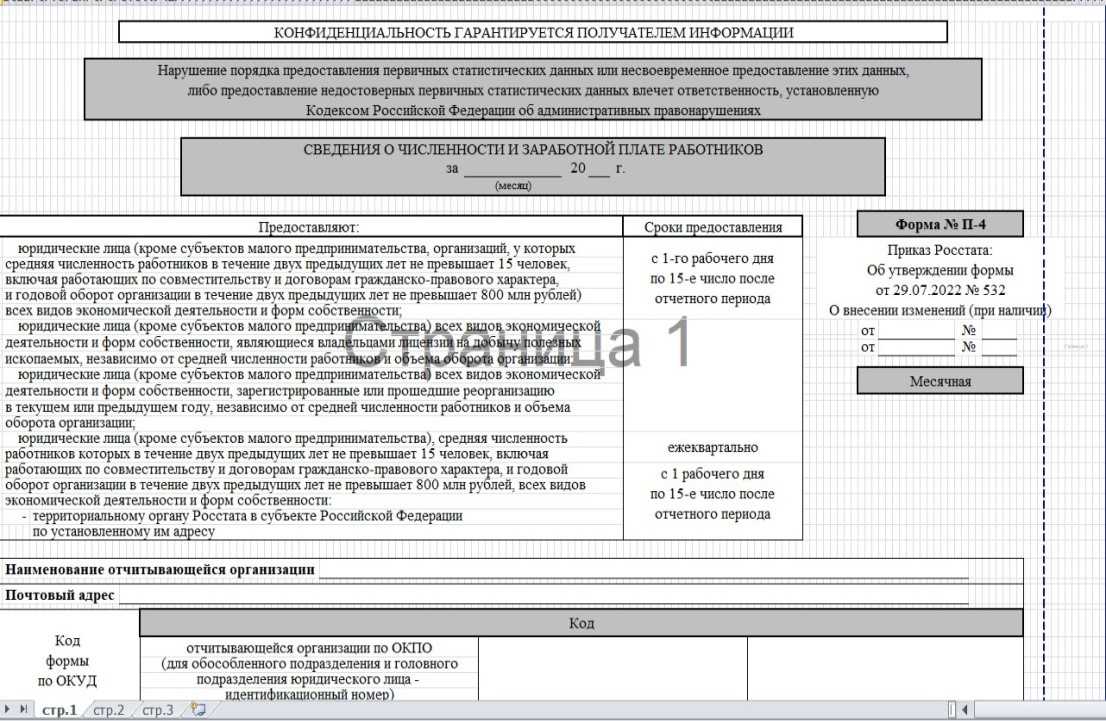 Рис. 1. Форма № П-4 Сведения о численности и заработной плате работников