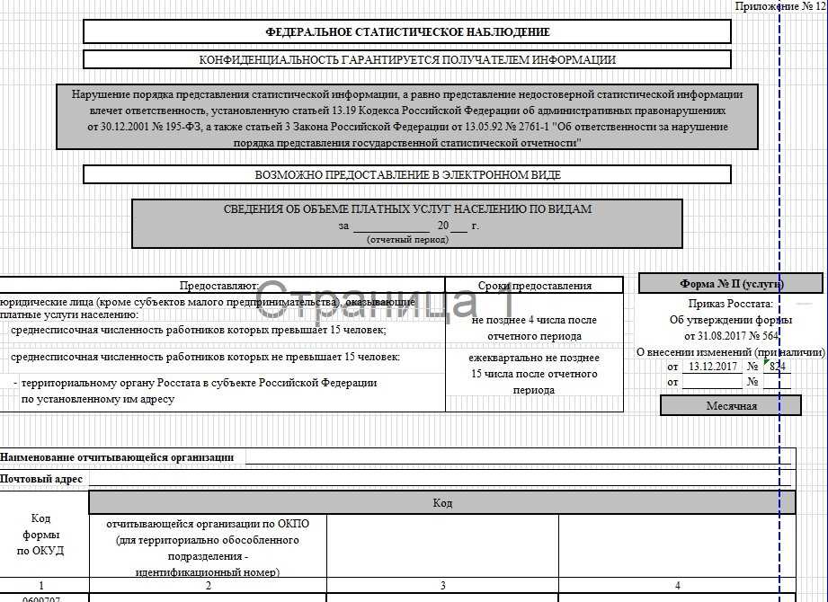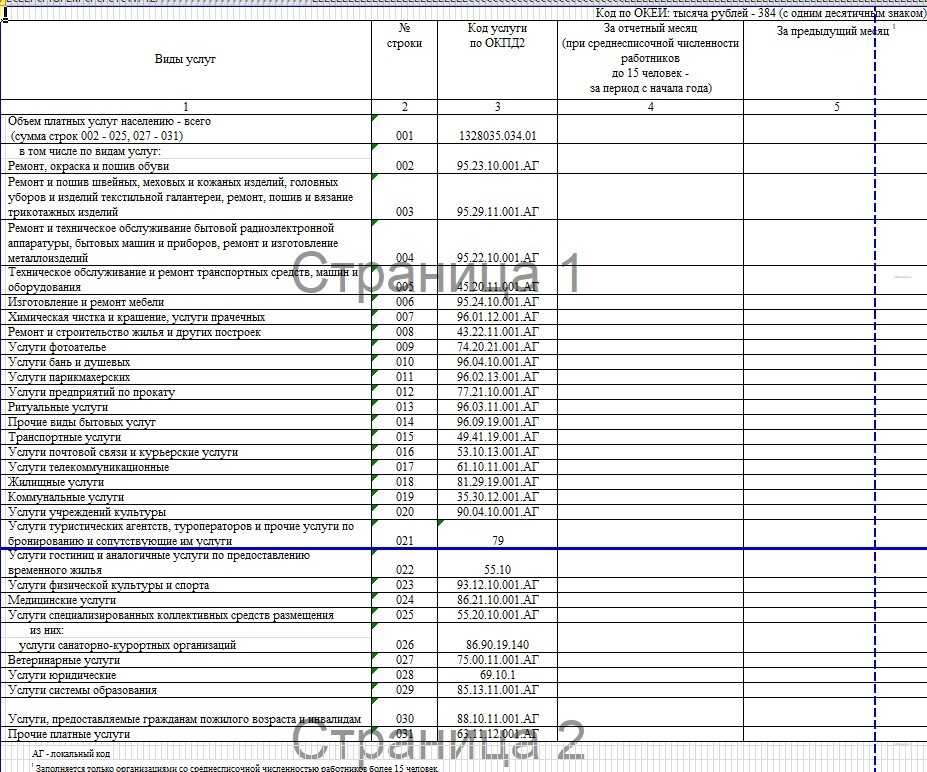 Рис. 3. Форма № П (услуги). Сведения об объеме платных услуг населению по видам