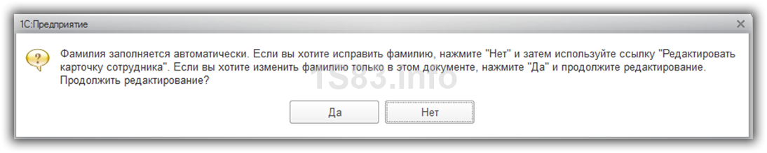 Данное предупреждение можно проигнорировать, внеся в документ все нужные изменения. Мы не рекомендуем этого делать. В том случае, когда сюда попали некорректные данные, лучше исправить их непосредственно в карточке сотрудника, чтобы в дальнейшем как здесь, так и в других документах были только правильные данные.