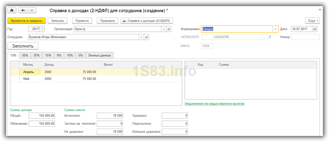 Как сделать справку 2-НДФЛ в 1С 8.3 и 8.2