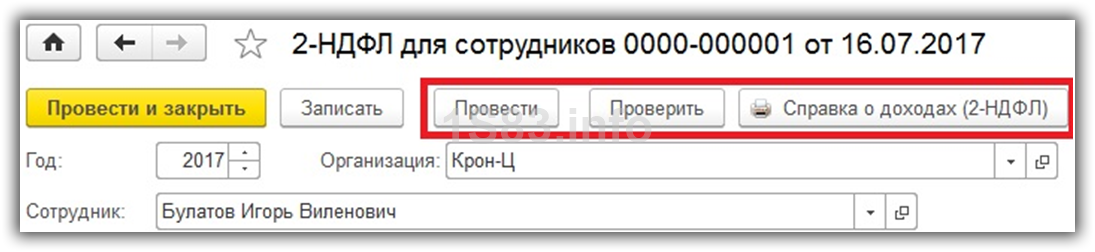 После самостоятельной проверки всех данных, вы можете запустить программную проверку соответствующей кнопкой и провести документ. Далее печатается уже сама справка 2-НДФЛ по сотруднику.