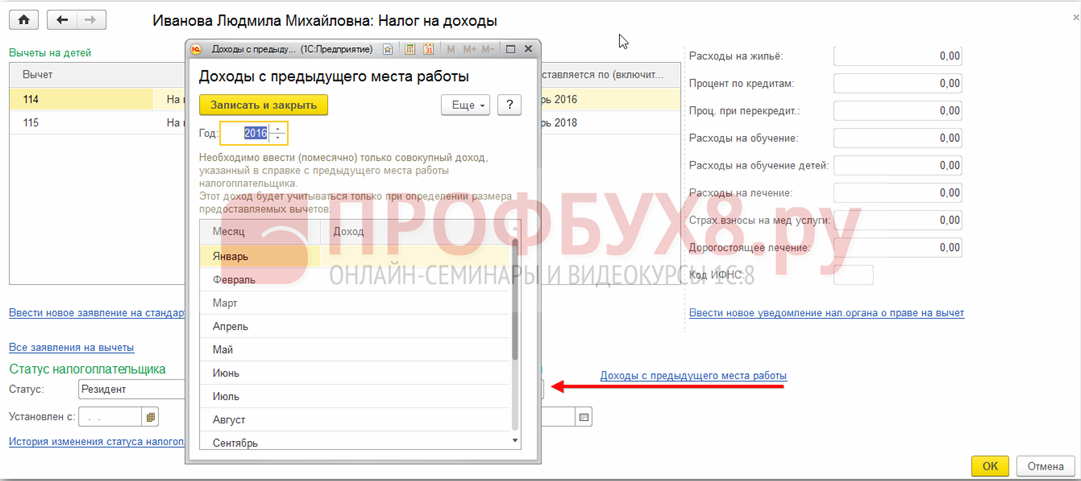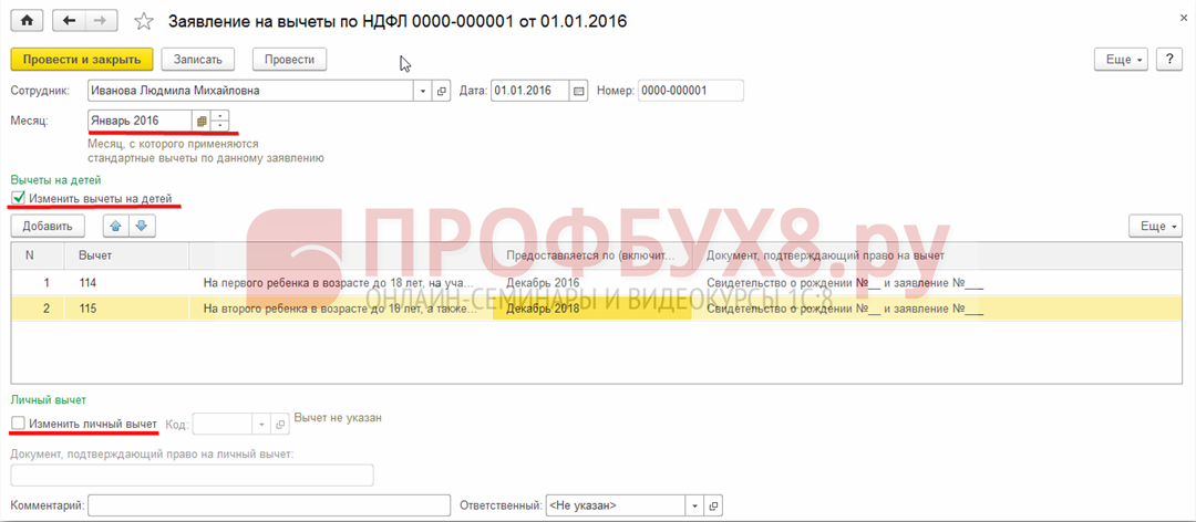 - Необходимо установить только месяц, с которого прекращаются все стандартные вычеты: