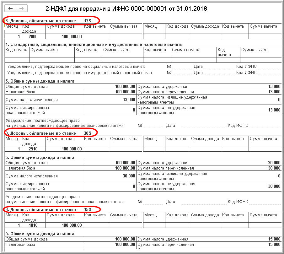 Следовательно, форма 2-НДФЛ содержит три Раздела 3 «Доходы, облагаемые по ставке. » (рис. 3).