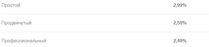 | Профессиональный + опция «Премиум» | 2,1% | до 2,3% |