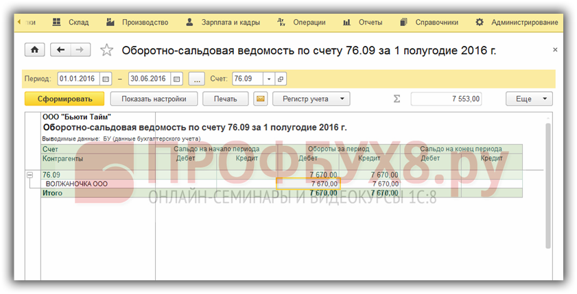 Проверяем по оборотно – сальдовой ведомости взаиморасчеты с комитентом: