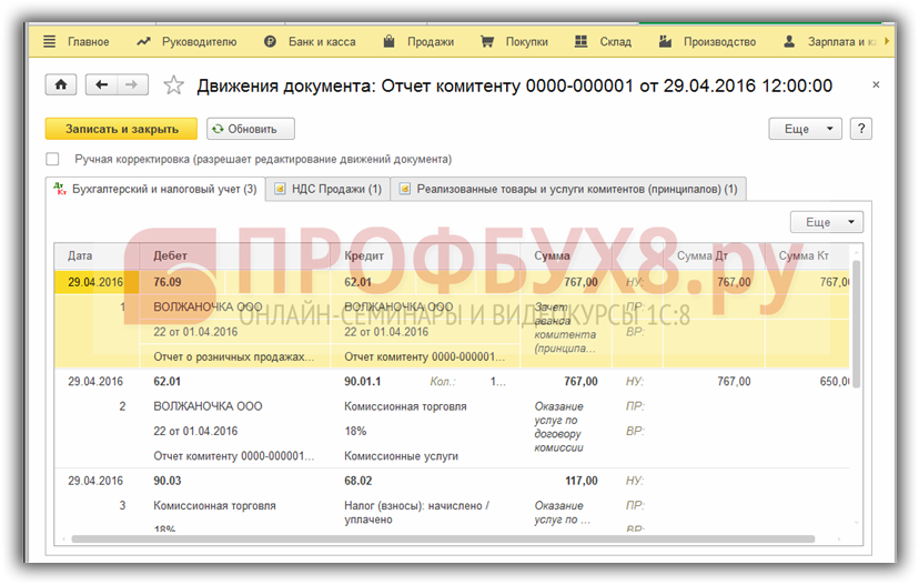 Отражение операций у комиссионера в розничной торговле