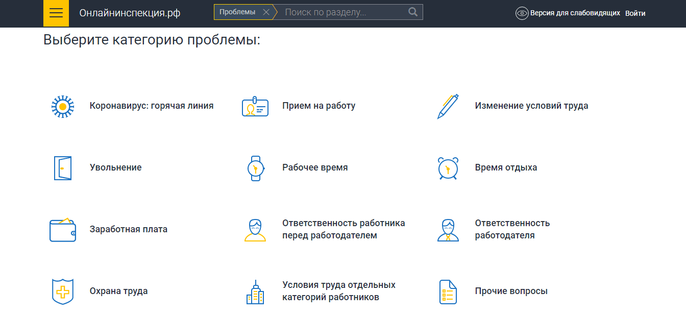 Сотрудник жалуется на компанию на сайте Роструда и выбирает, что хочет получить по итогам проверки