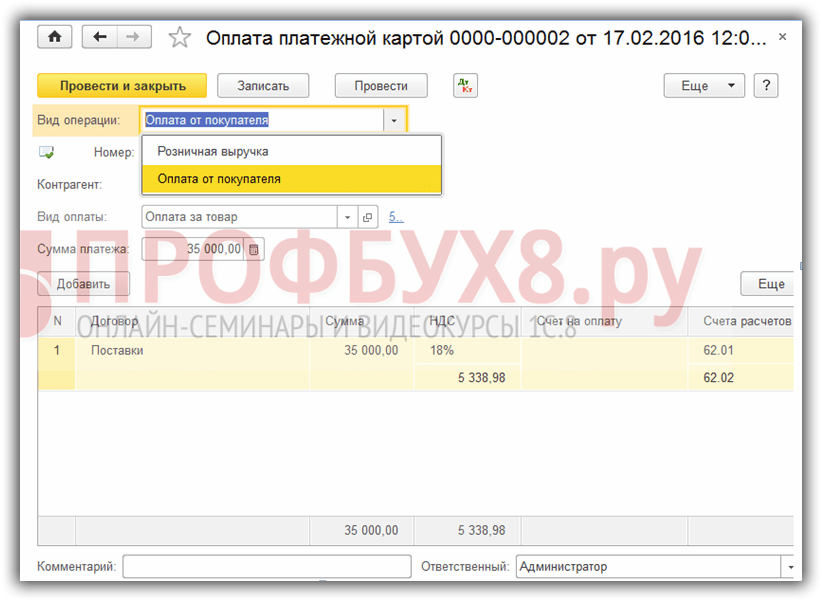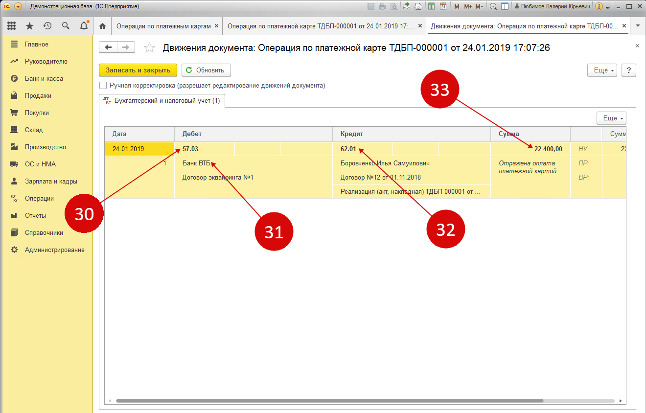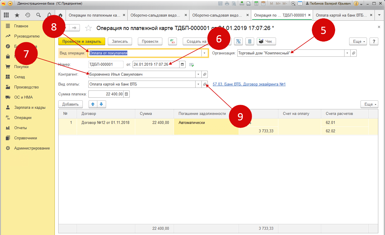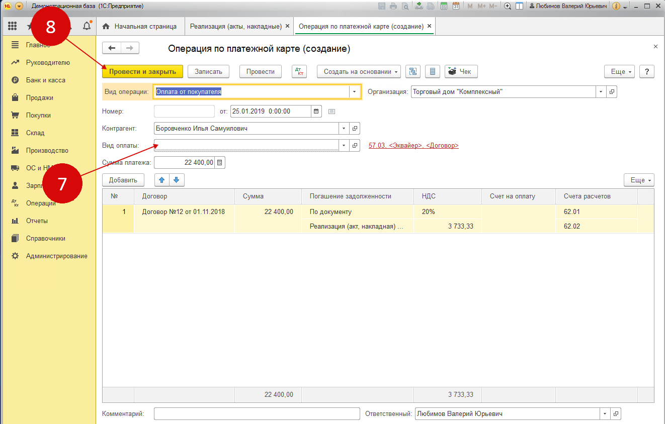 Шаг 4. Как провести эквайринг в 1С 8.3