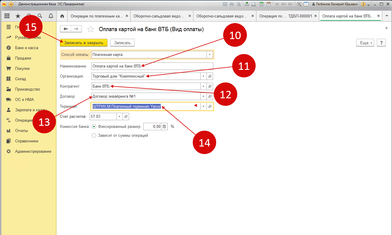 - Контрагента (12). Выберете из справочника банк-эквайер;