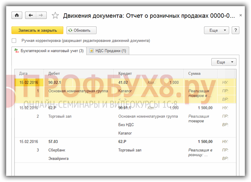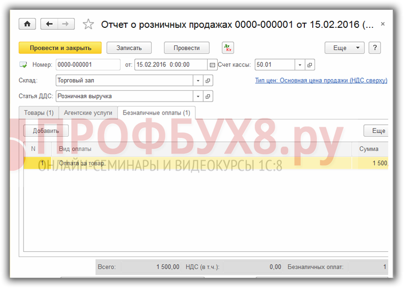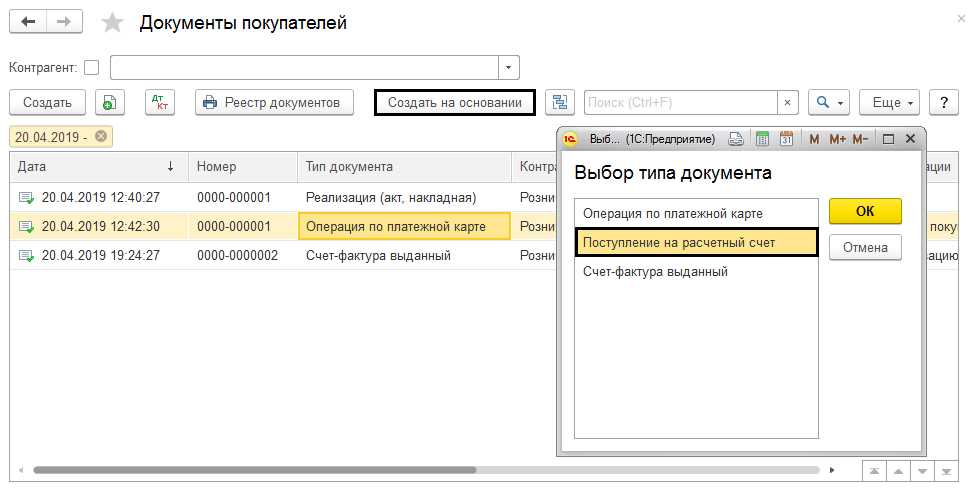 Шаг 3. Учет эквайринга в 1С 8.3 при розничной торговле
