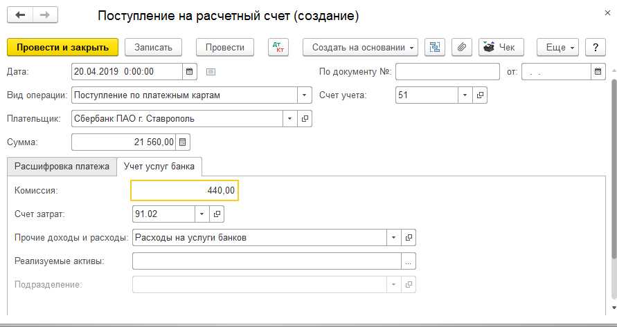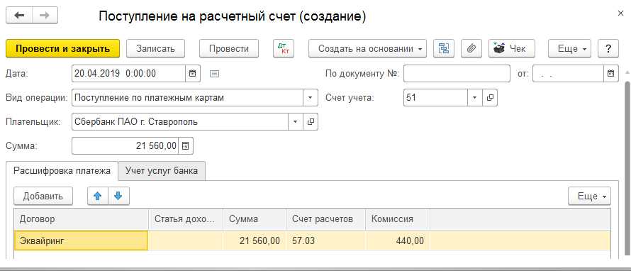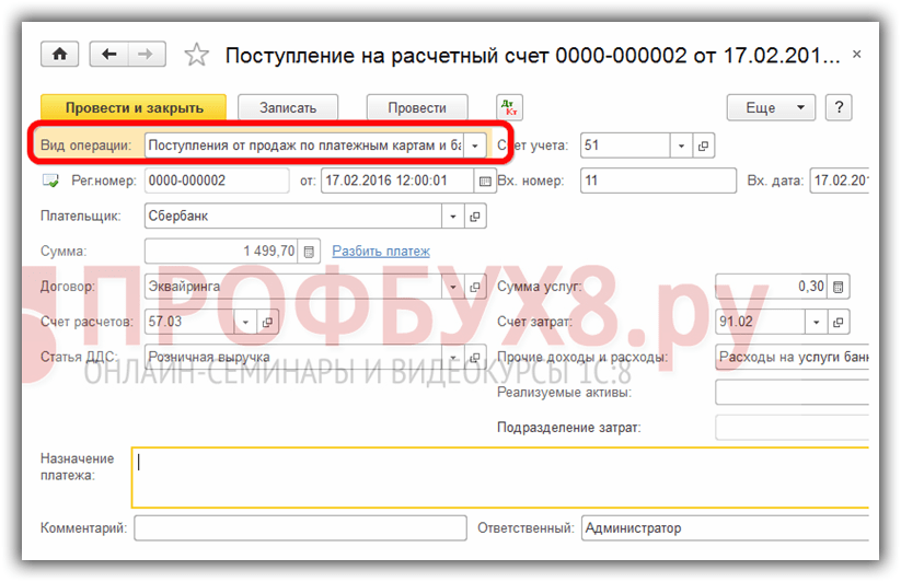Шаг 2. Как отразить эквайринг в 1С 8.3