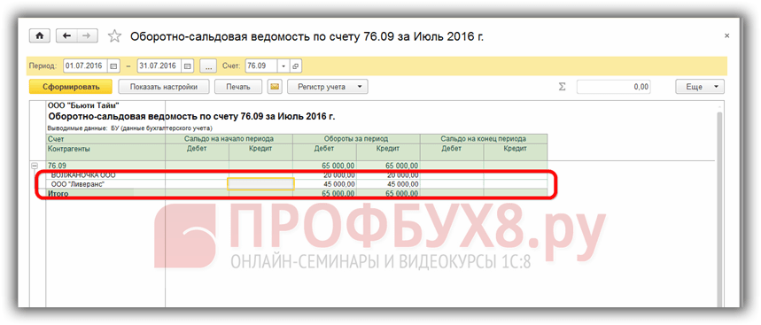 Все расчеты проведены с учетом удержания комиссионного вознаграждения, проверим по оборотно-сальдовой ведомости по счету 76.09: