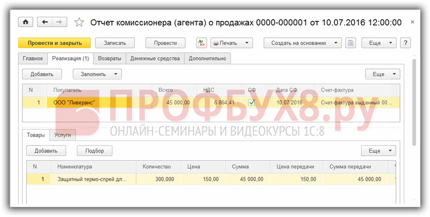 Как провести отчет комиссионера у комитента в 1с 8.3