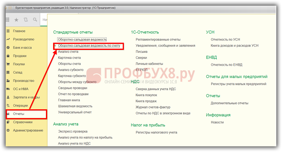 Для контроля остатка топлива на складе в 1С 8.3 формируем оборотно-сальдовую ведомость (ОСВ) по счету 10.3. Документ находится на закладке Отчеты: