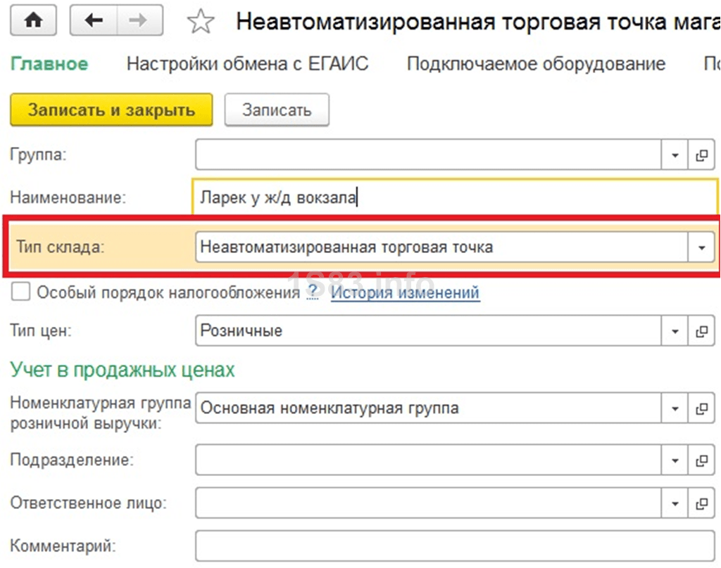 Неавтоматизированную торговую точку назовем «Ларек у ж/д вокзала». У нее будет уже другой тип.