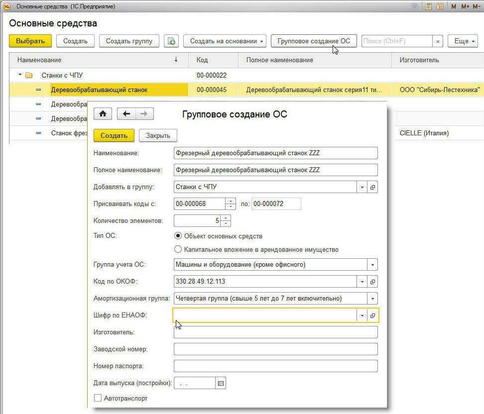 . Все элементы будут иметь одинаковые наименования и содержать информацию, заданную в полях формы группового добавления. Чтобы быстро заполнить документы учета ОС (Принятие к учету ОС