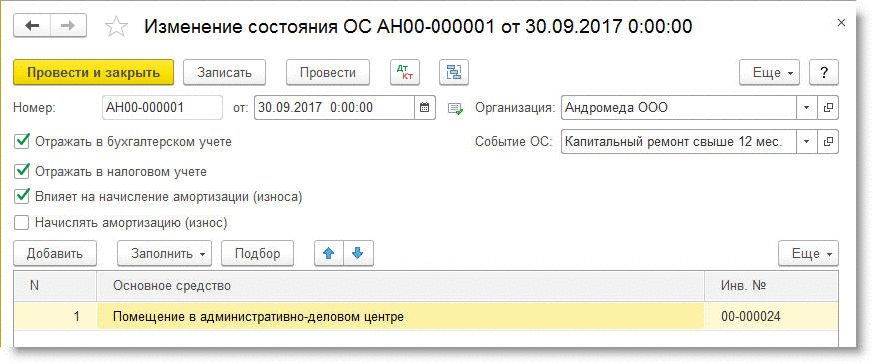 и т. д.) однотипными объектами основных средств, имеющими одинаковые наименования, нужно ввести в табличную часть хотя бы один такой объект (кнопка Добавить