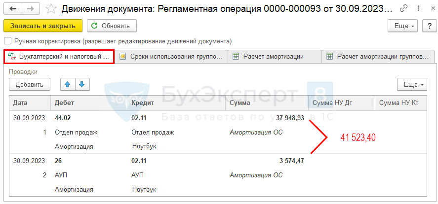 , а также Амортизация БУ