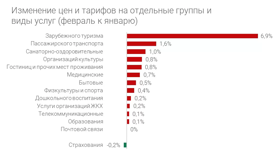 Основной рост цен в сегменте услуг пришелся на зарубежный туризм, а единственной услугой, где наблюдалось ослабление инфляционного давления, стало страхование.