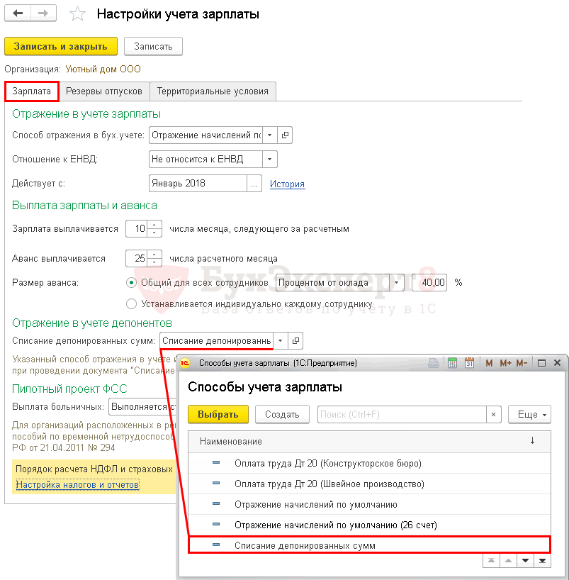 Данные настройки устанавливают сроки выплаты зарплаты: