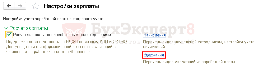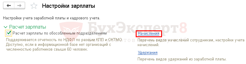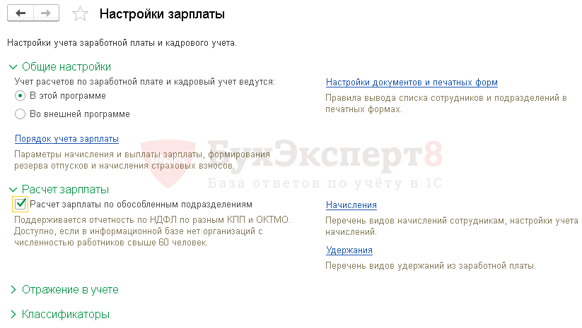 Расчет зарплаты по обособленным подразделениям ведется, если в 1С 8.3 Бухгалтерия установлен соответствующий флажок.