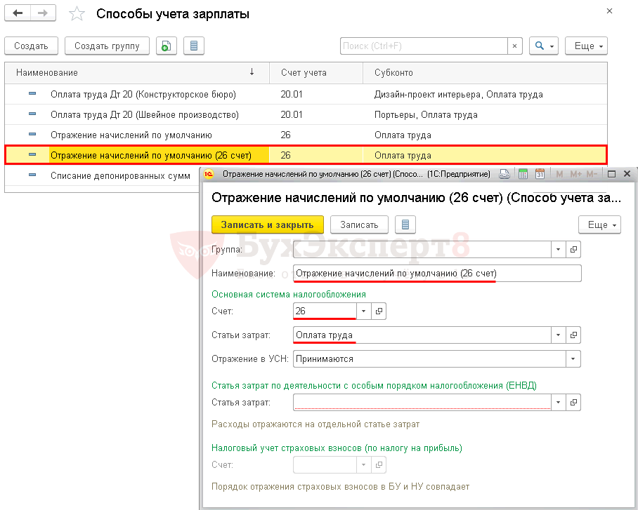 В справочнике Способы учета зарплаты можно настроить и сам элемент — соответствующий способ учета.