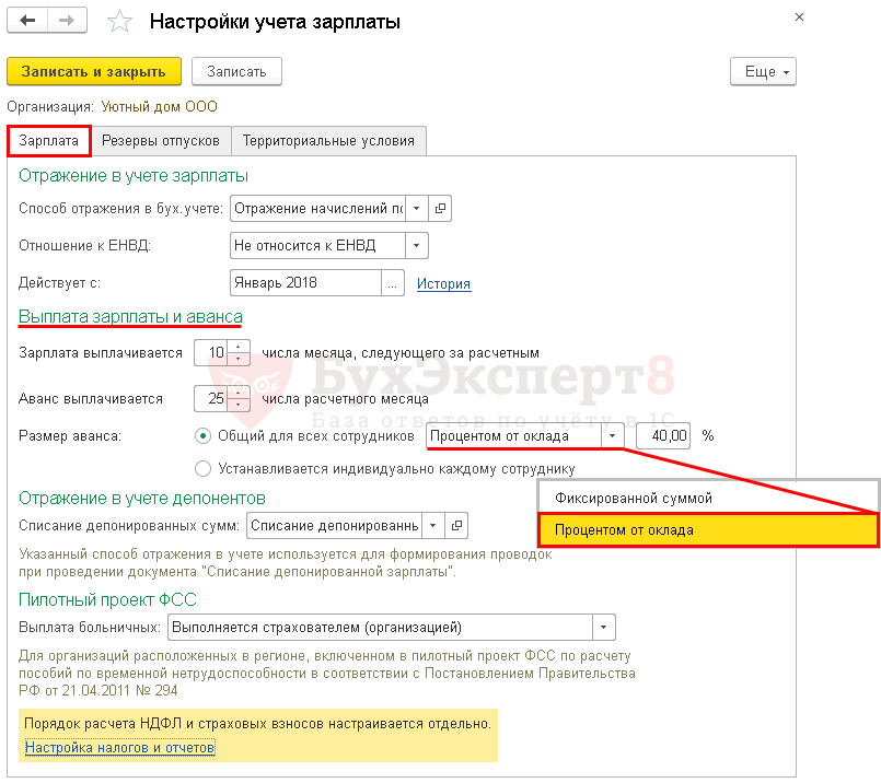 Процент аванса в 1С 8.3 ЗУП 3.1