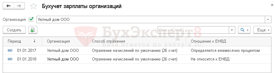 Автоматически в базе устанавливается способ Отражение начислений по умолчанию (26 счет). В программе он задан как наиболее часто используемый для отражения начислений на счете 26 «Общехозяйственные расходы» в корреспонденции со счетом 70 «Расчеты с персоналом по оплате труда».