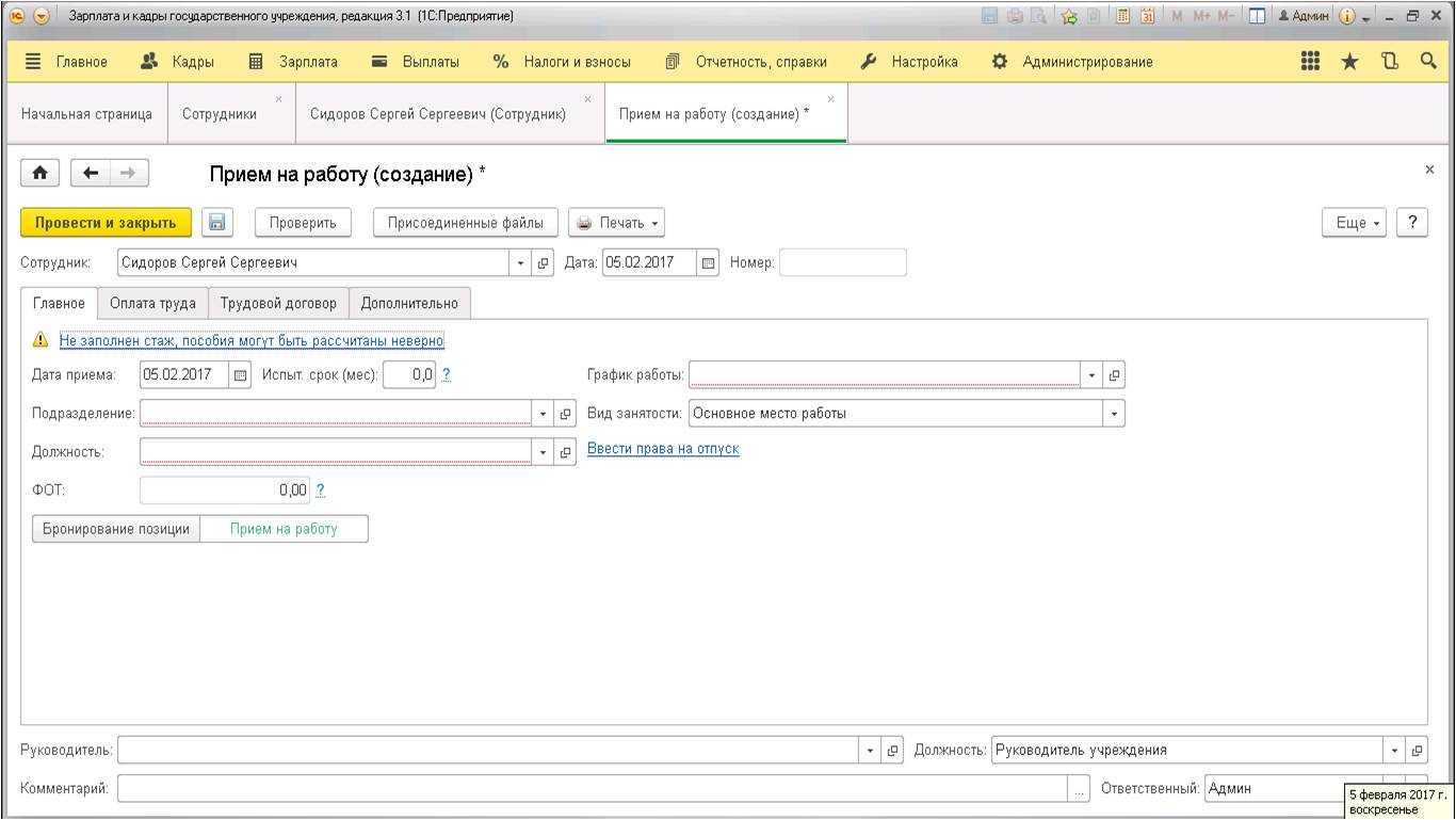 - Заполнить данные о начислениях в соответствующих справочниках;