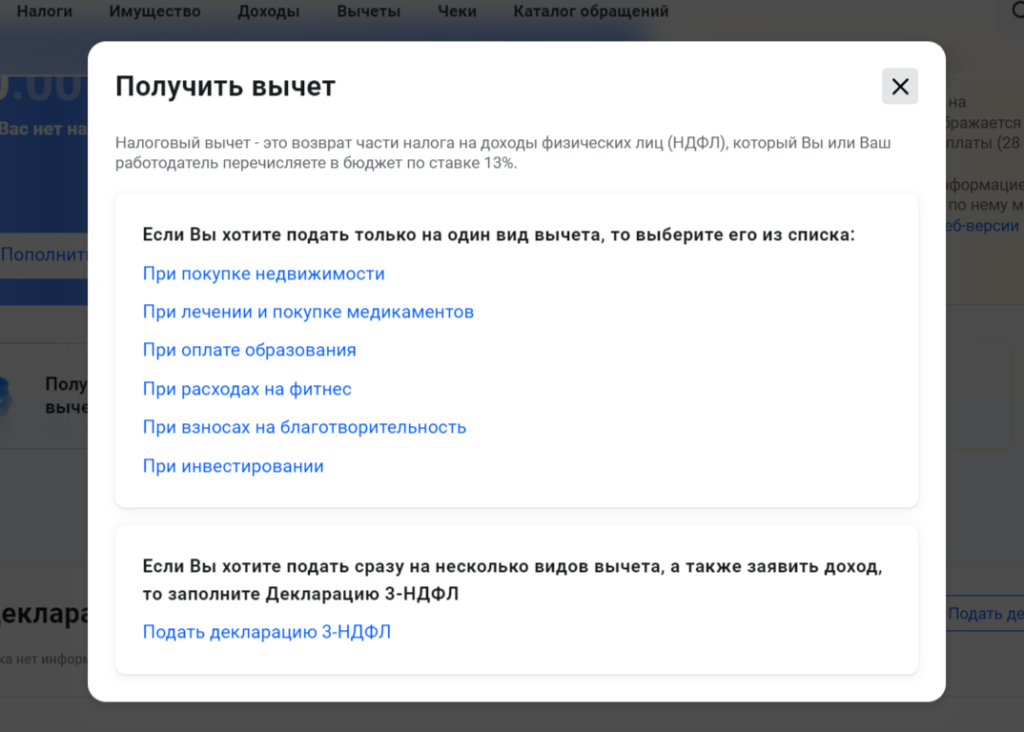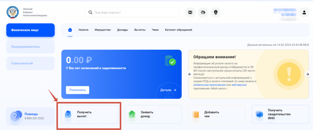 - Перейти на главной странице во вкладку «Получить вычет»: