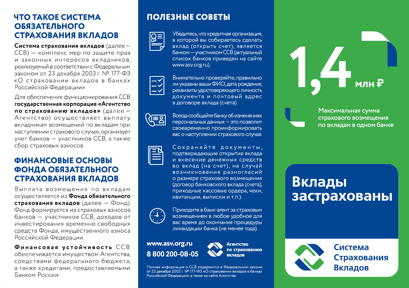 В России система страхования действует относительно недавно – с 2003 года. И за время своего существования максимальный размер страхового возмещения увеличился в 14 раз: со 100 000 до 1,4 млн рублей.
