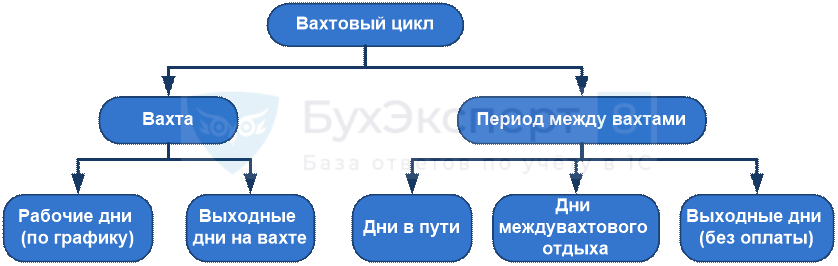 Время работы и отдыха сотрудников, которым установлен вахтовый метод, можно представить в виде повторяющихся вахтовых циклов.
