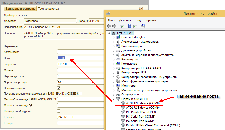 Порт, к которому подключено оборудование, можно определить в диспетчере устройств панели управления операционной системы.