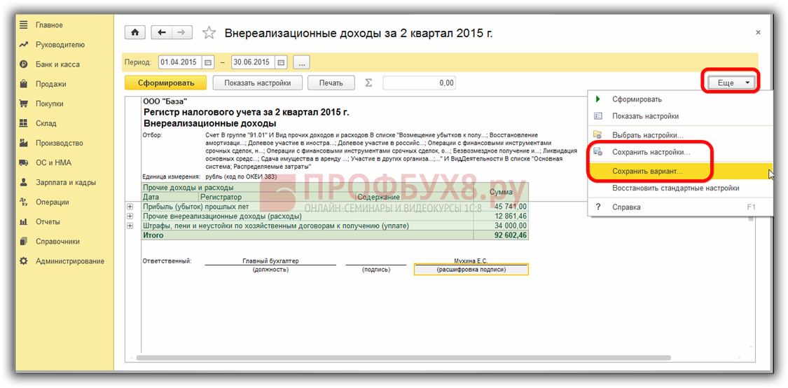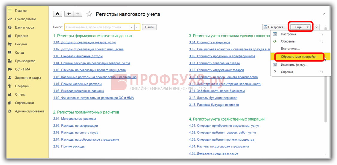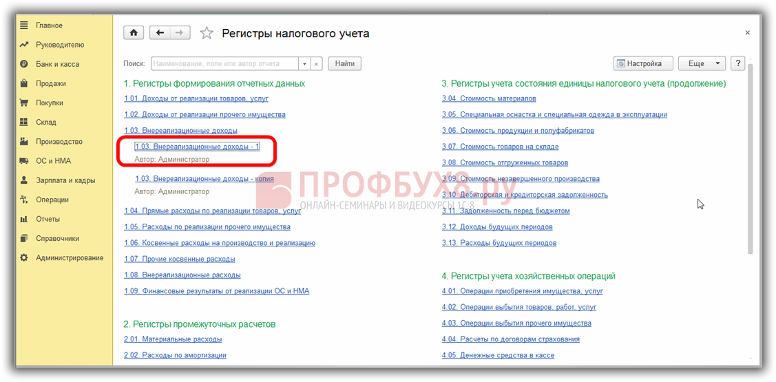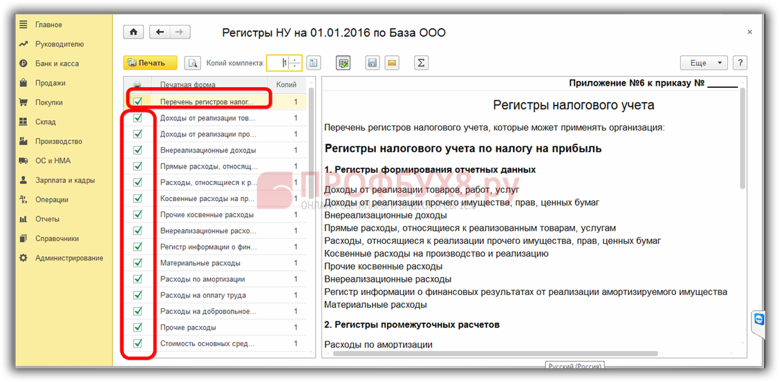 Формы регистров налогового учета и порядок их отражения в 1С 8.3