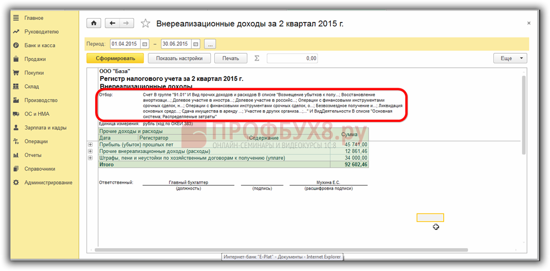 Образец заполнения регистров налогового учета в 1С 8.3