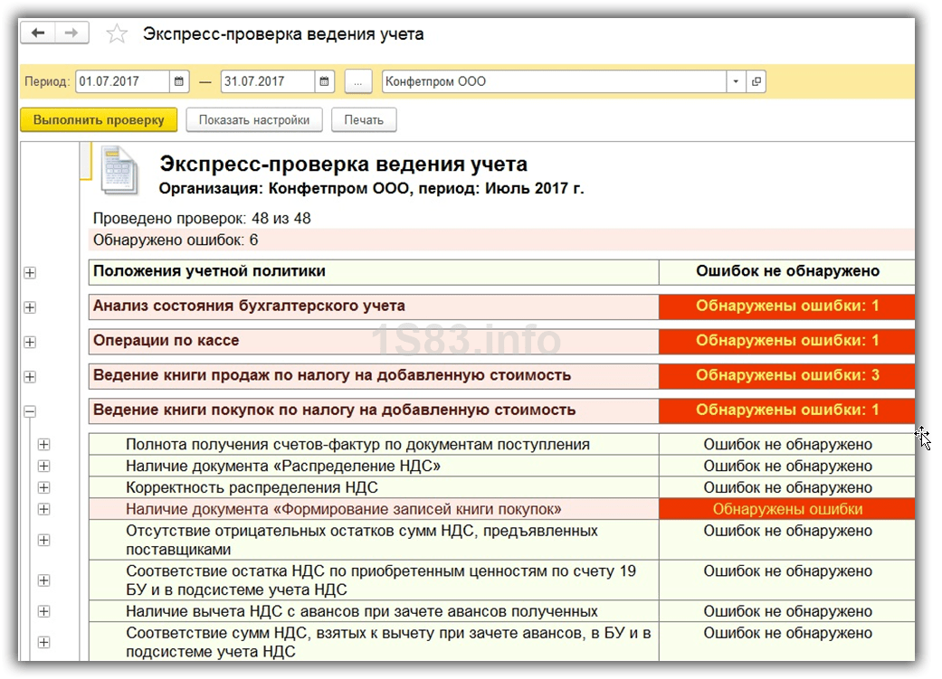 Конечно же вы можете вручную проверять данные в регистрах, устанавливая соответствующие отборы, но можете воспользоваться и специальным отчетом. Он называется «Экспресс-проверка».