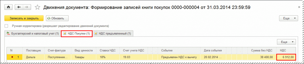 Итоговую картину можно увидеть в отчетах « » и «Книга покупок».
