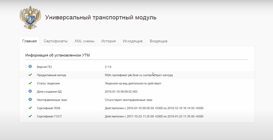 После того, как установка завершится, на рабочем столе появится иконка программы Универсального транспортного модуля (УТМ). Нажмите на неё правой кнопкой мыши и выберите верхний пункт «Домашняя страница». Если все работает без ошибок, страничка будет выглядеть так: